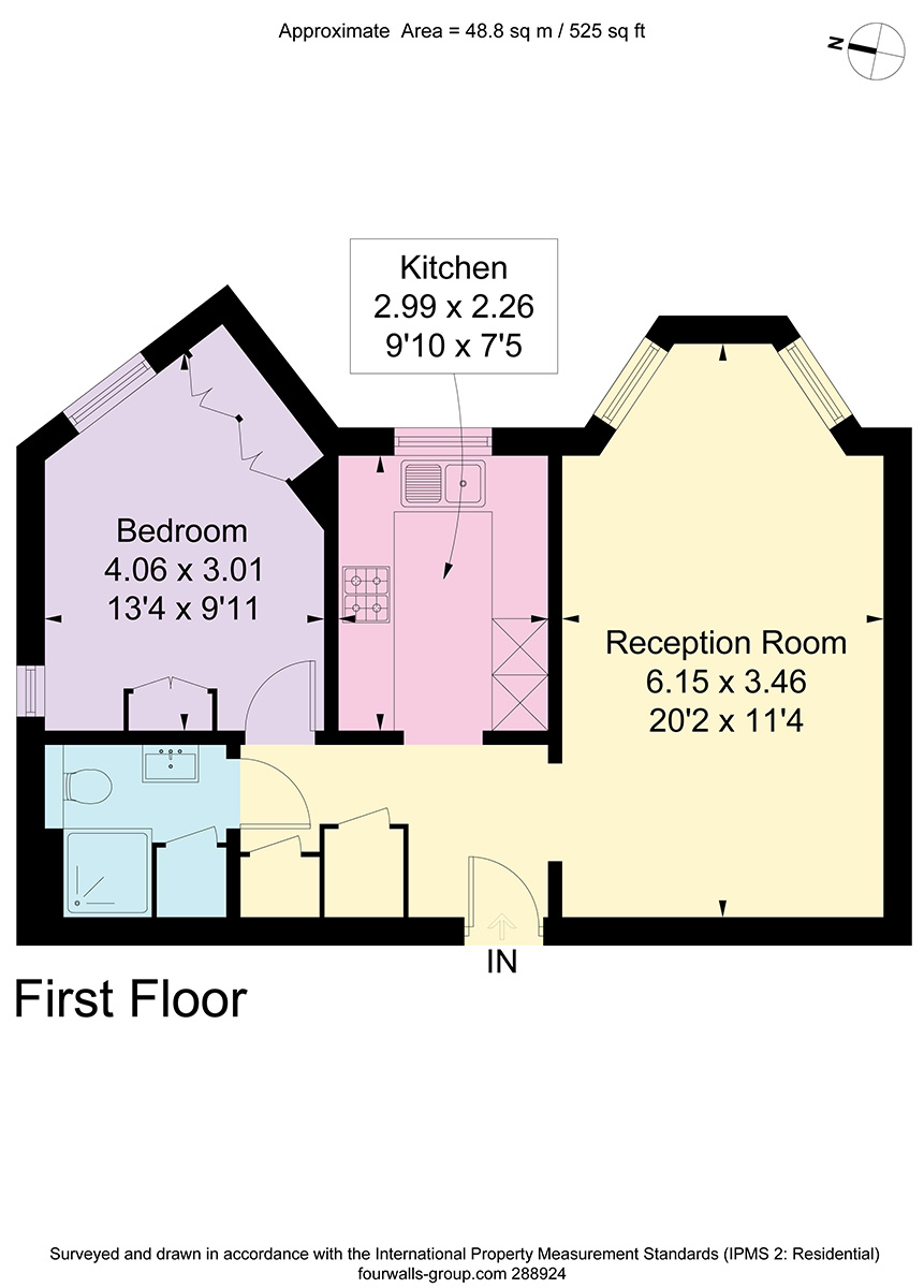 Approximate Gross Internal Area: 48,8 sq m / 525 sq ft