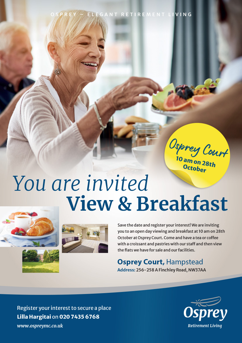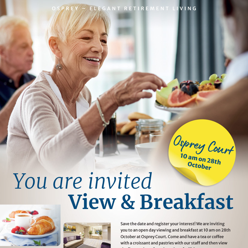 Come and have breakfast before viewing the retirement flats we have for sale at Osprey Court.